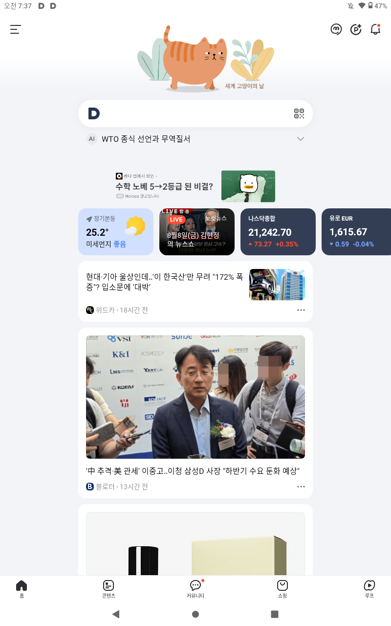 네이버는 고양이 포즈가 귀엽네요. 확실히 네이버가 더 귀여운 것 같습니다.